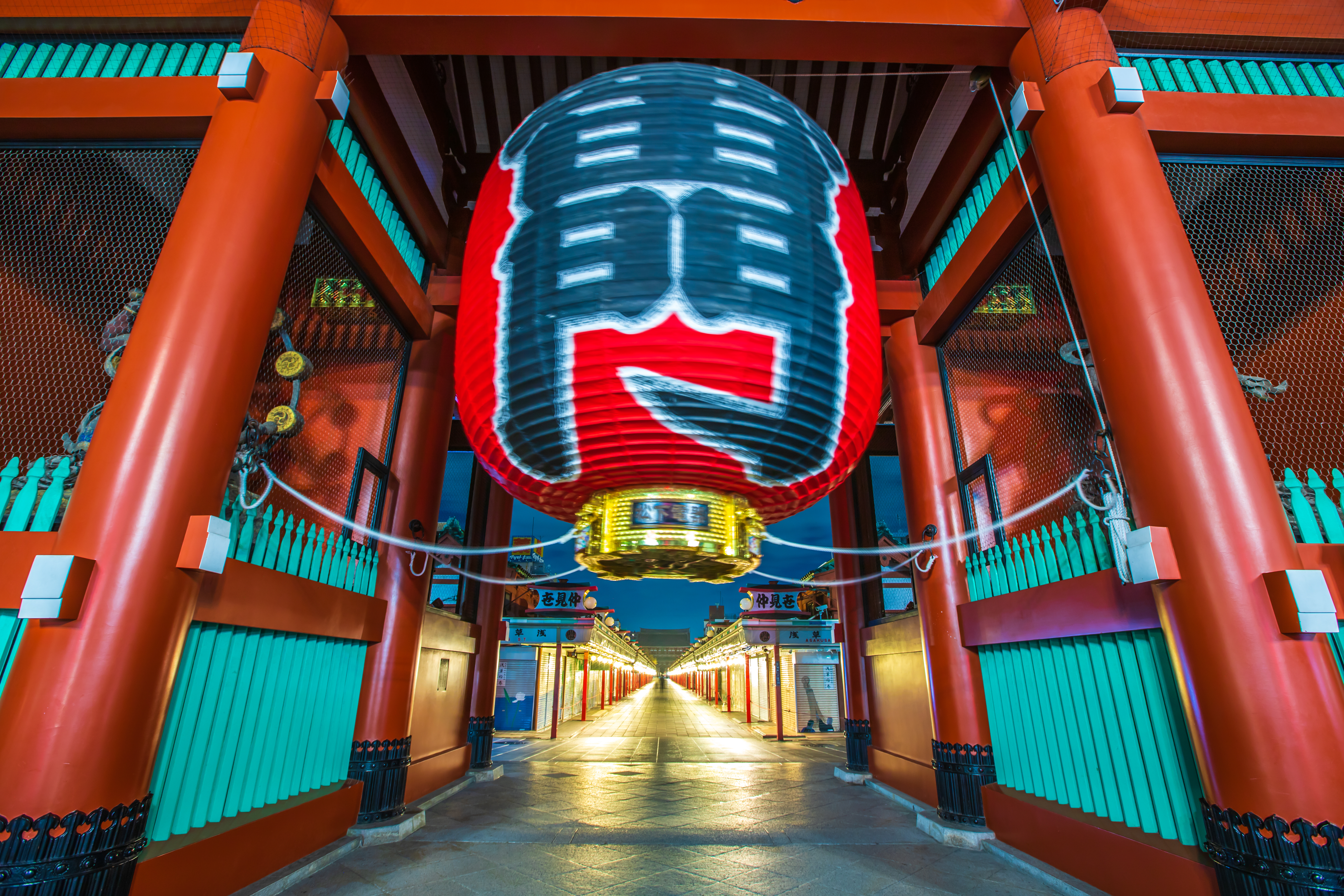 The ceremonial entrance to Asakusa’s historic streets. Nakamise shopping street, a historic shopping street leading from Kaminarimon to the temple.